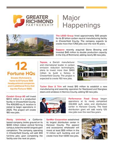 We’re not the only ones impressed by Greater Richmond. See international accolades that the region has earned for its business community and amenities.
