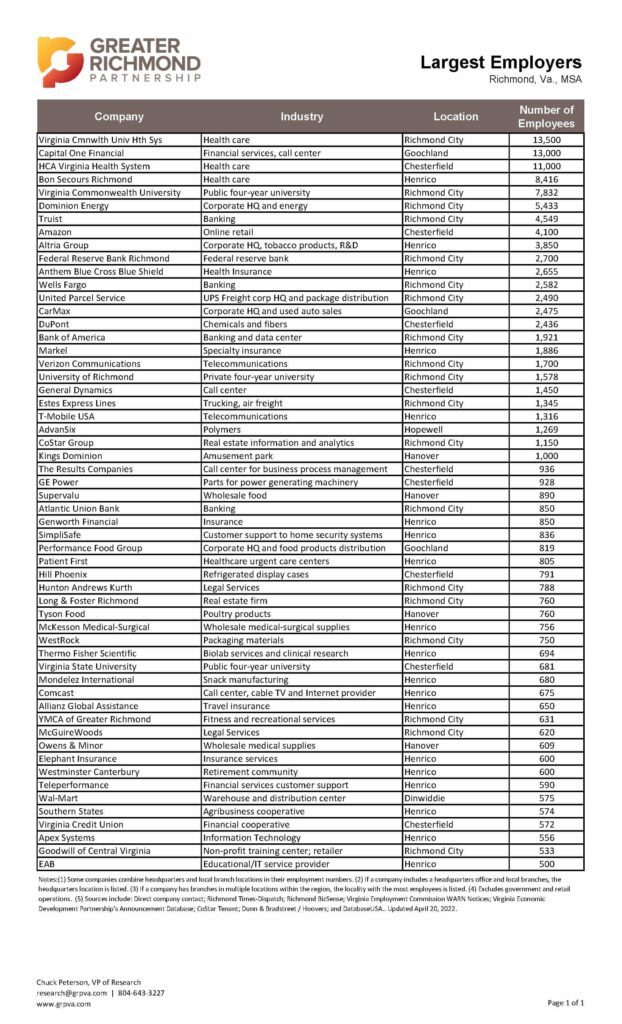 Some of the world’s most successful businesses call Greater Richmond home. Numerous Fortune 1000 companies have corporate headquarters here: